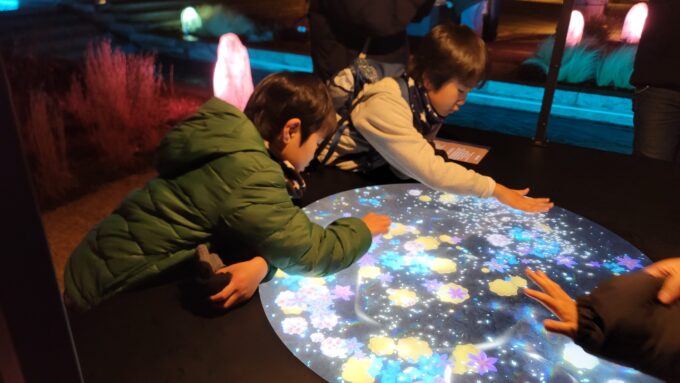 手をかざすことで光と音で楽しませてくれる仕掛けが各地に設置してあって子供たちも大満足