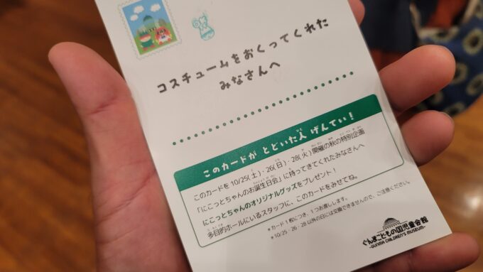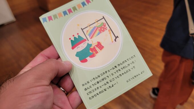 以前「にこっとちゃんのコスチュームを考えよう」的な企画に応募して、そのお礼に誕生日会の招待状が送られてきました