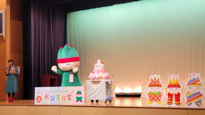 今回はぐんまこどもの国のキャラクター「にこっとちゃん」のお誕生日会に参加